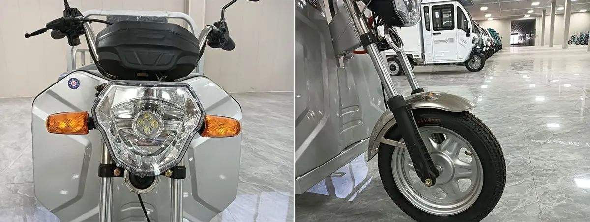 4. electric tricycle have big headlight it’s very clear and , bright and clear