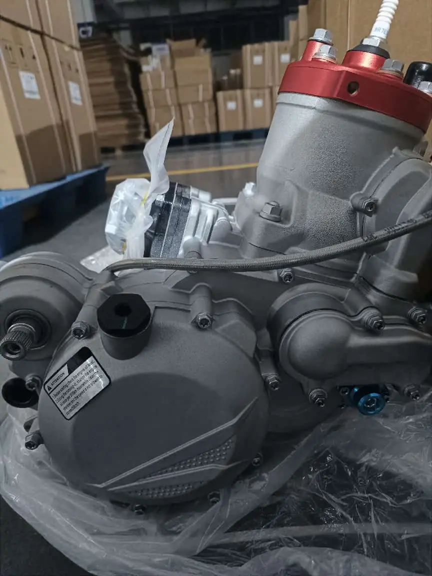 The YUANLU KTM300 racing motorcycle engine exported this time features outstanding performance advantages. It adopts a single-cylinder water-cooled structure, which effectively ensures the stability of the engine during high-intensity operation and avoids overheating problems. As a two-stroke engine, it has the characteristics of high power output and fast response, which can fully meet the power demand of racing motorcycles on the track. Meanwhile, the manual clutch design is adopted to provide riders with more precise control rights, helping them to better play their riding skills.