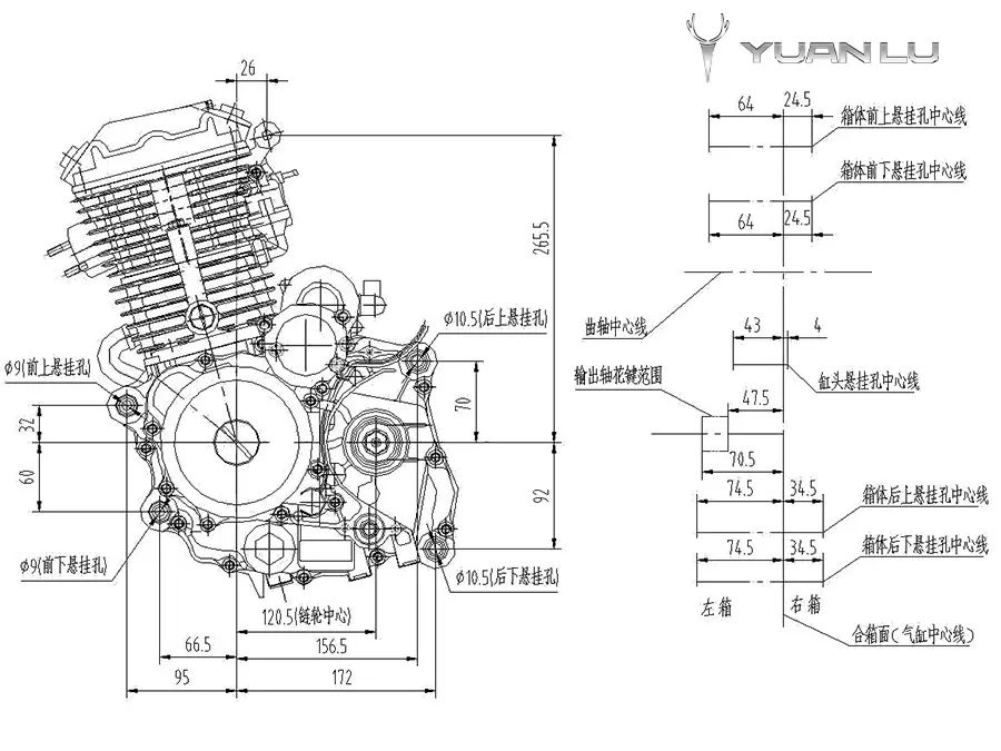 Increase the left crankshaft diameter, increase crank strength, and extend crankshaft service life.